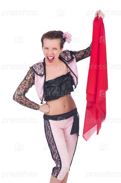 Женщина-тореадор, изолированная на белом