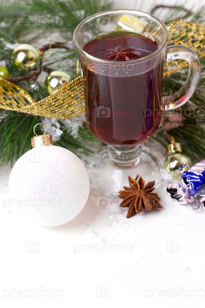 Чашка чая и новогодние украшения