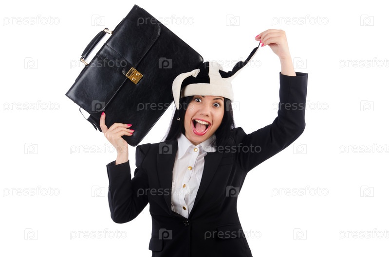 Бизнес-леди клоун, изолированная на белом фоне