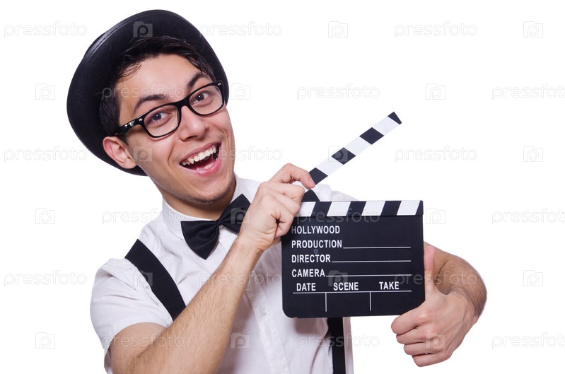 Забавный человек с хлопушкой