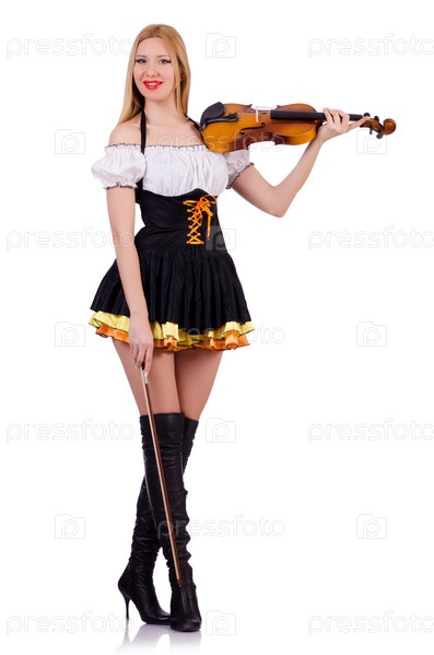 Девушка играет на скрипке на белом фоне