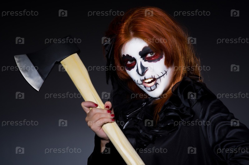Женщина-монстр с топором в темной комнате