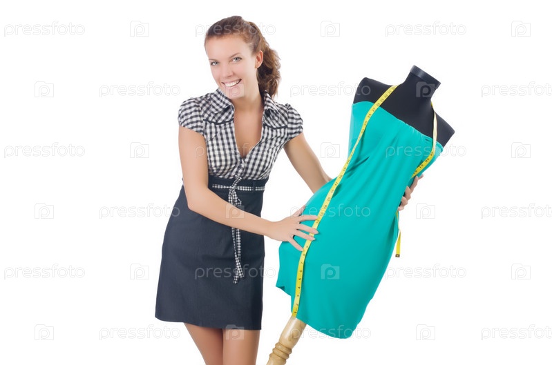 Портной работает на белом фоне