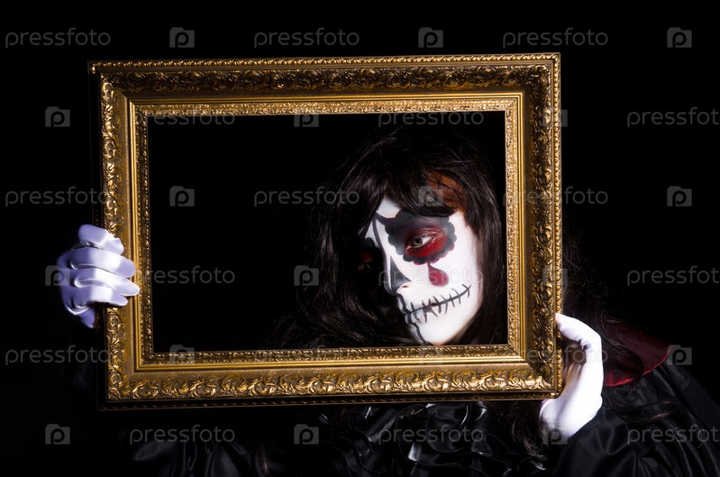 Монстр с рамой в темной комнате