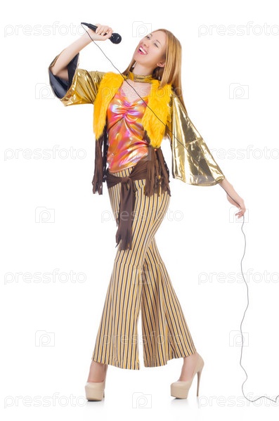 Женщина в испанской одежде с микрофоном