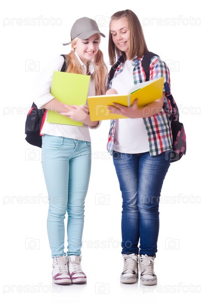 Пара учеников на белом фоне