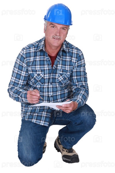 Строитель пишет на листе бумаги