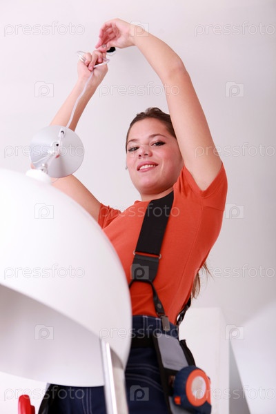 Портрет женщины, ремонтирующей электрическую проводку