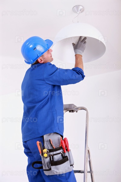 Электрик меняет лампу