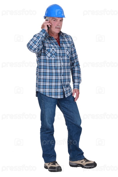 Рабочий с мобильным телефоном