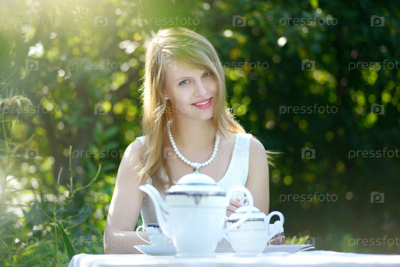Красивая женщина пьет чай