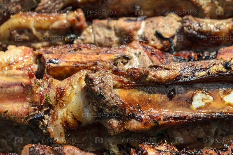 Шашлык - традиционное русское блюдо из свиных ребрышек