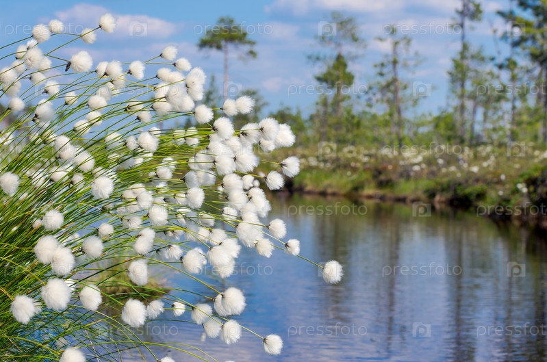 Цветущая пушица над водой