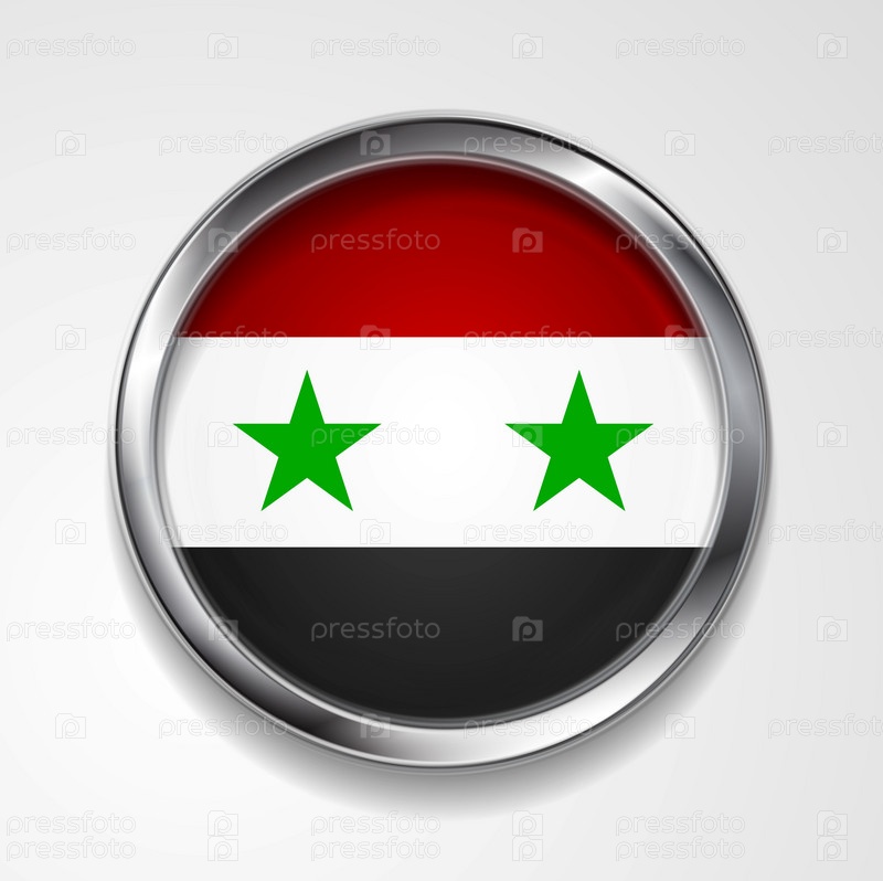 Векторная кнопка со стильной металлической рамкой. Сирийский флаг