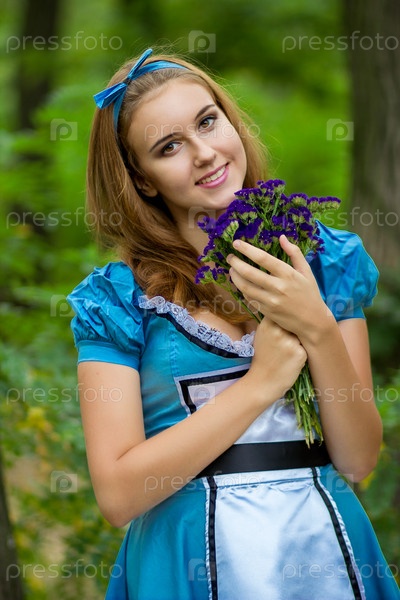 Портрет красивой русой девушки в образе Алисы в стране чудес