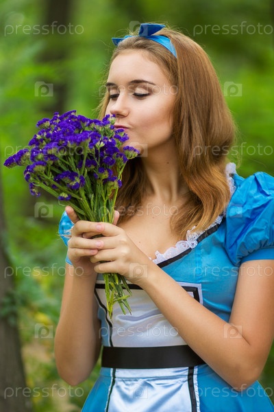 Портрет красивой русой девушки в образе Алисы в стране чудес