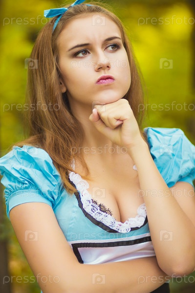 Портрет красивой русой девушки в образе Алисы в стране чудес