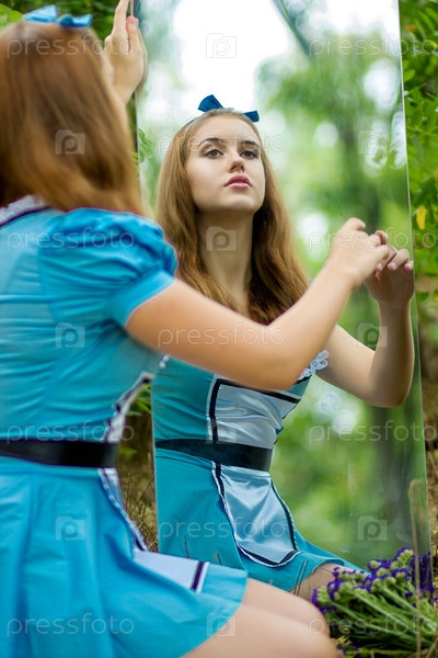 Портрет красивой русой девушки в образе Алисы в стране чудес