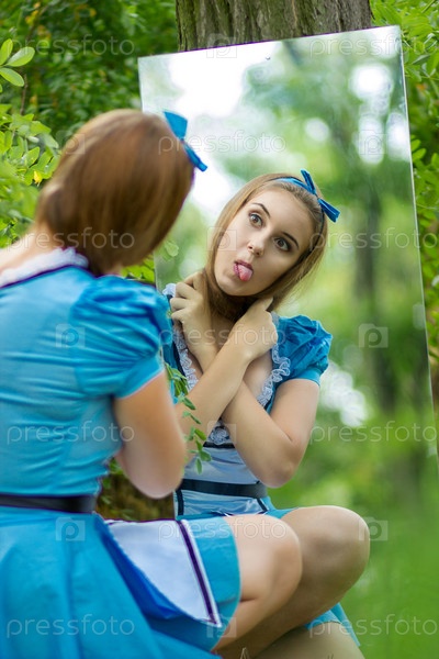 Портрет красивой русой девушки в образе Алисы в стране чудес
