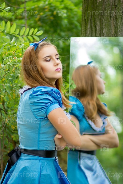 Портрет красивой русой девушки в образе Алисы в стране чудес