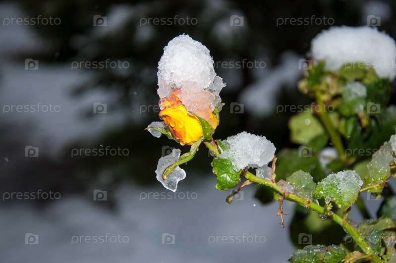 Первый снег и желтая роза