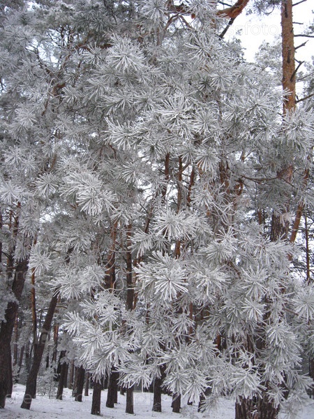 Сосновая ветвь в инее