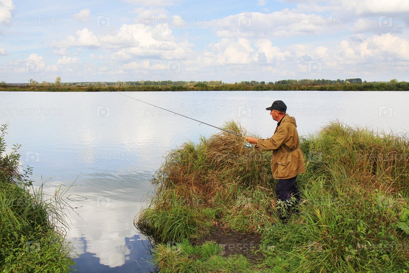 Пожилой рыбак со спиннингом