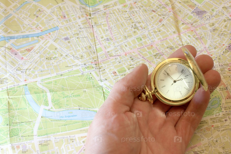 Часы и географическая карта как элемент выбора направления для путешествия