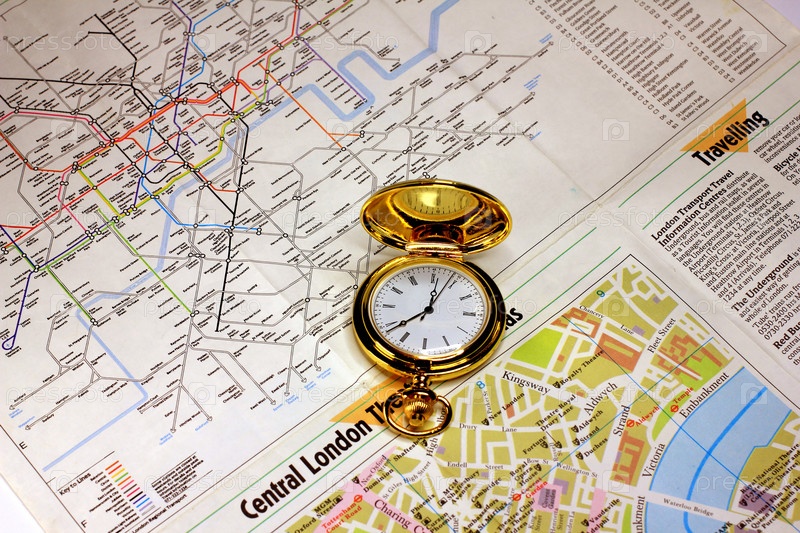 Часы и географической карты как элемент выбора направления путешествие
