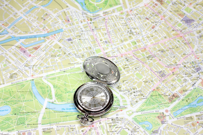 Часы и географическая карта как элемент выбора направления для путешествия