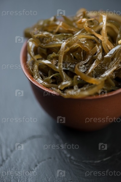 Керамическая чашка с маринованной морской капустой