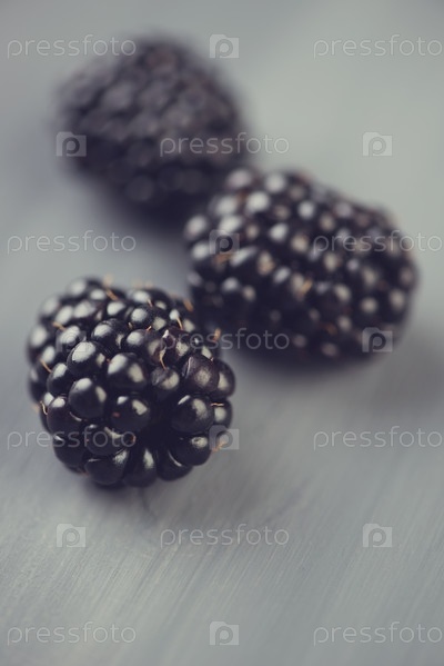 Спелая ежевика на серой древесине