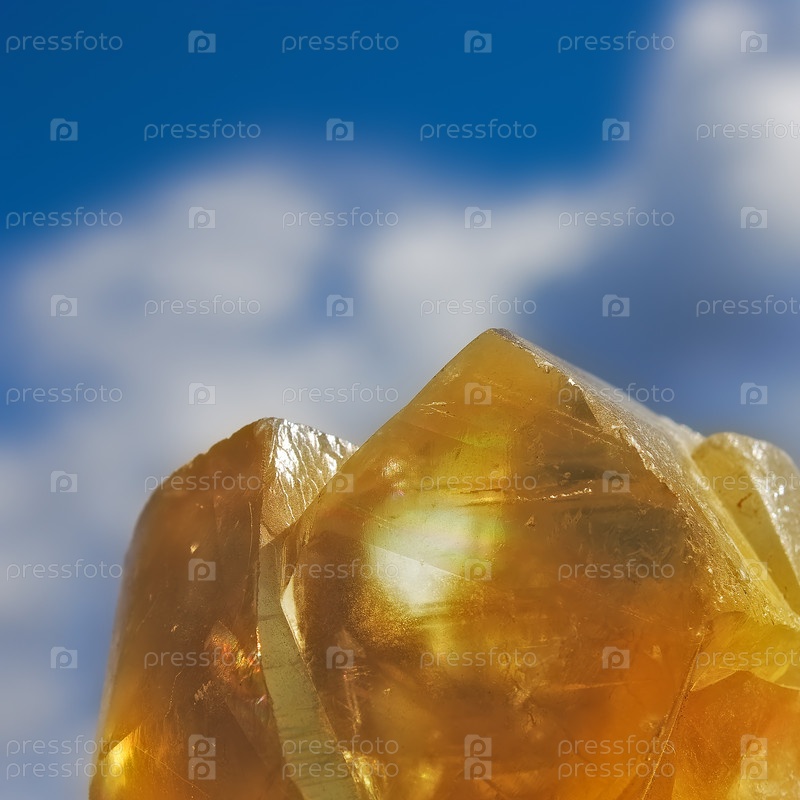 Прозрачные оранжевые кристаллы на фоне синего неба