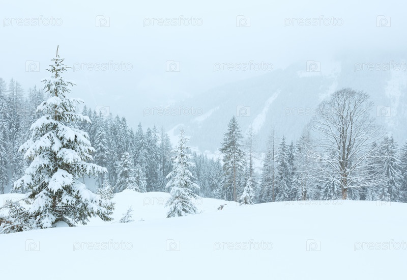 Зимние горы в тумане
