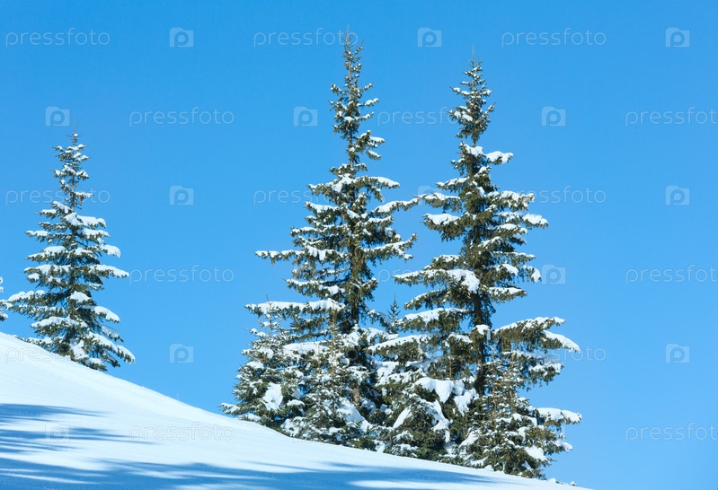 Зимние ели на фоне голубого неба