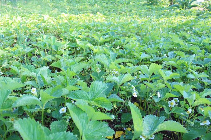 Гряда с цветущей клубникой