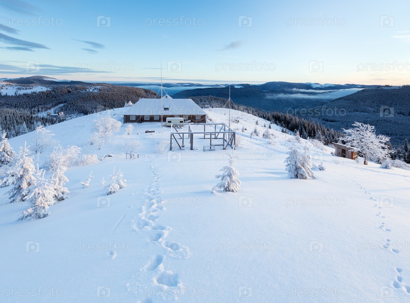 Утренний зимний горный пейзаж