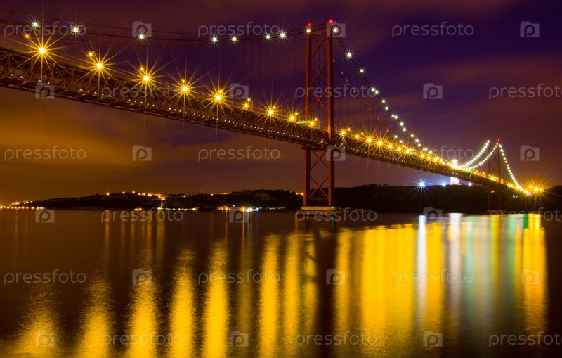 Подвесной мост через реку Тежу ночью, Лиссабон