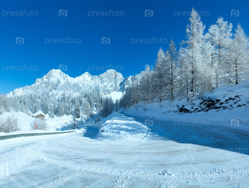 Зимнее утро на альпийской дороге