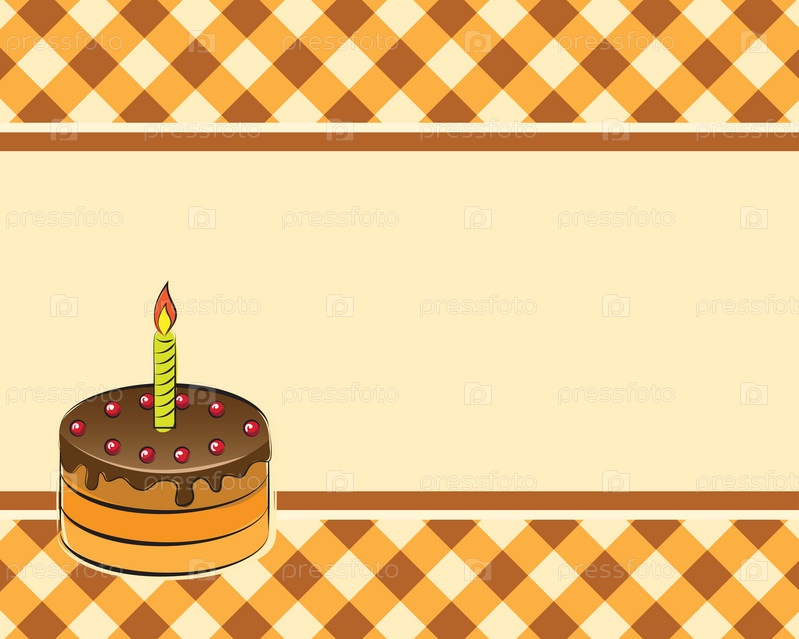 Шоколадный торт со свечой на клетчатом коричневом фоне