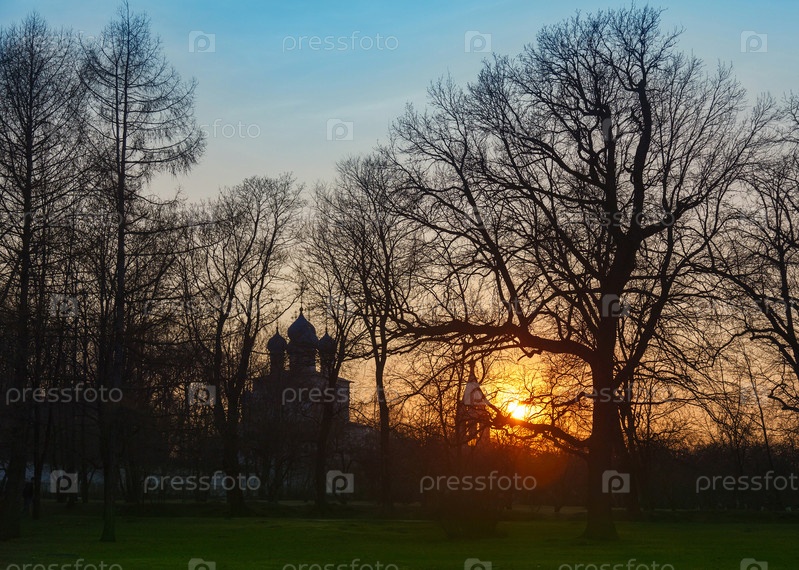 Деревянная церковь на закате