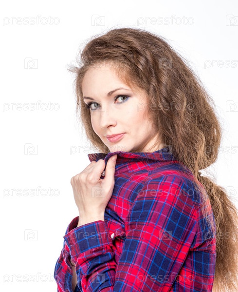 Привлекательная молодая женщина в клетчатой рубашке