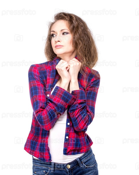 Привлекательная молодая женщина в клетчатой рубашке