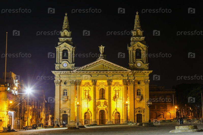 Собор Святого Публия в Флориане ночью. Мальта