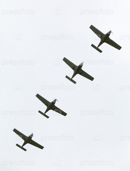 Четыре самолета в фигуре на авиашоу