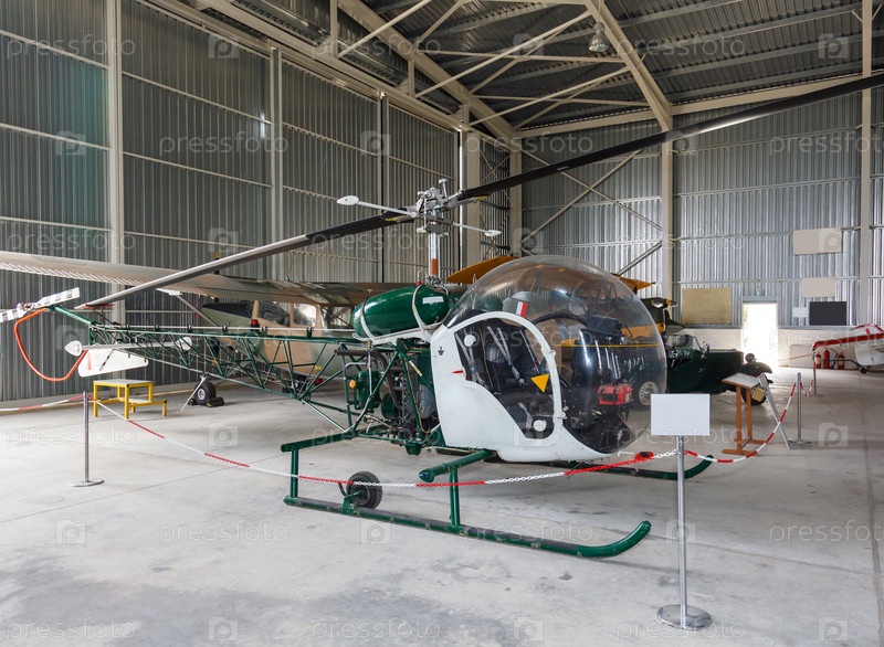 Вертолет Белл-47 в ангаре