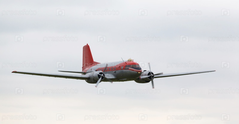 Старый самолет с пропеллером в пасмурном небе