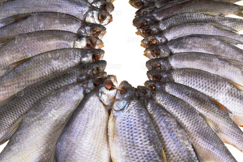 Солено-сушеная речная рыба на белом фоне