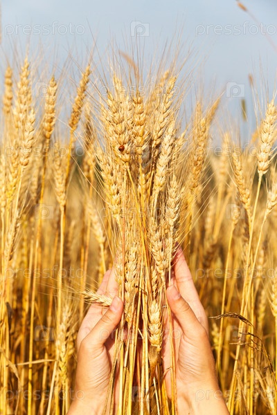 Пшеничные колосья в женских руках