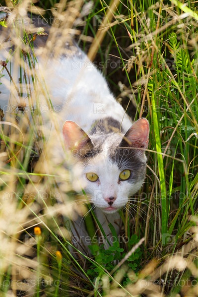 Кошка на траве